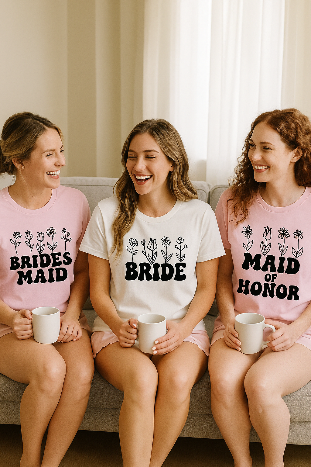 When your bridesmaids wear matching shirts, you're not just coordinating outfits—you're saying, "These are my people. My tribe. My chosen family."