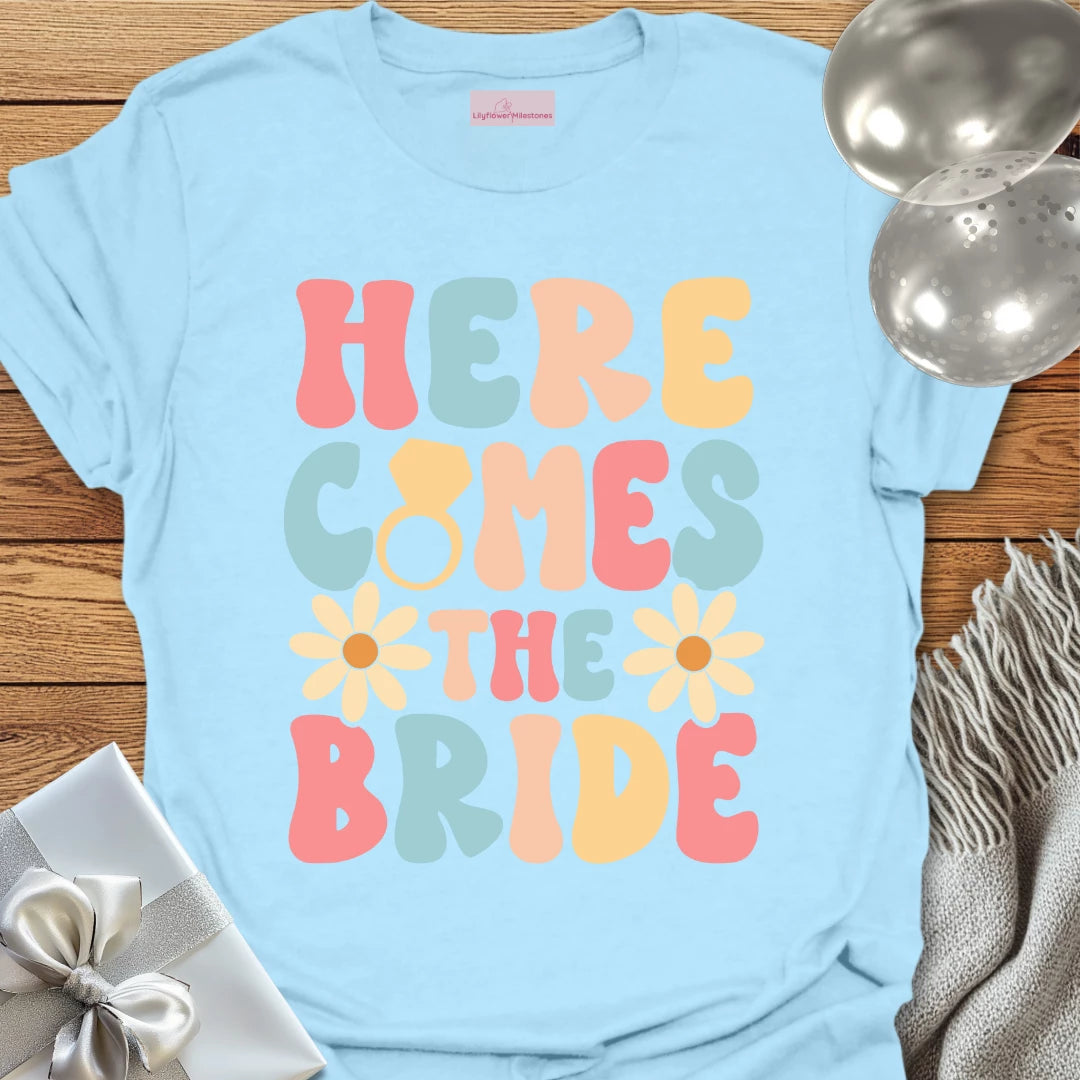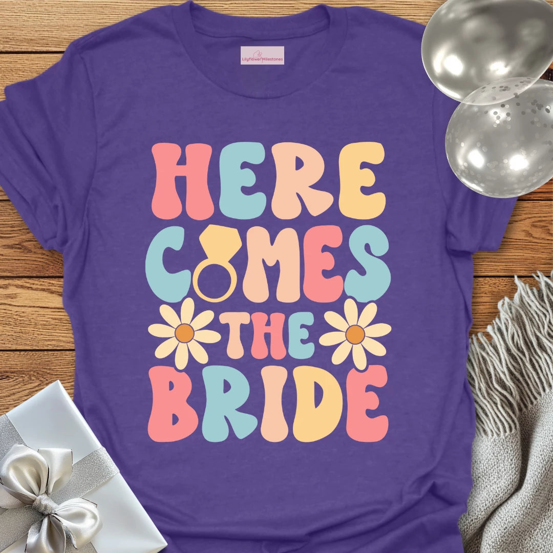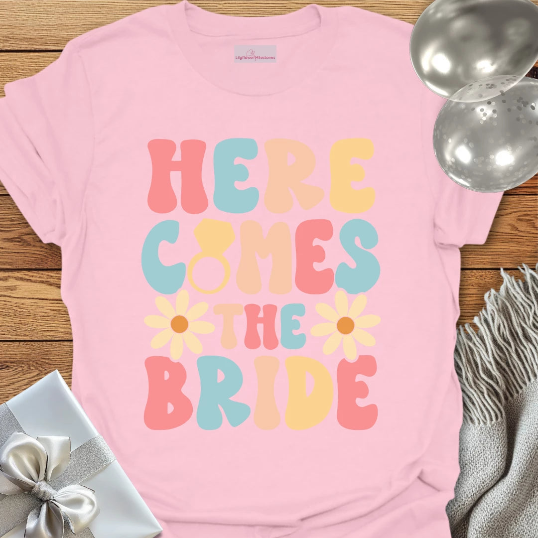 Here Comes the Bride (Groovy Floral) - Wedding T-Shirt