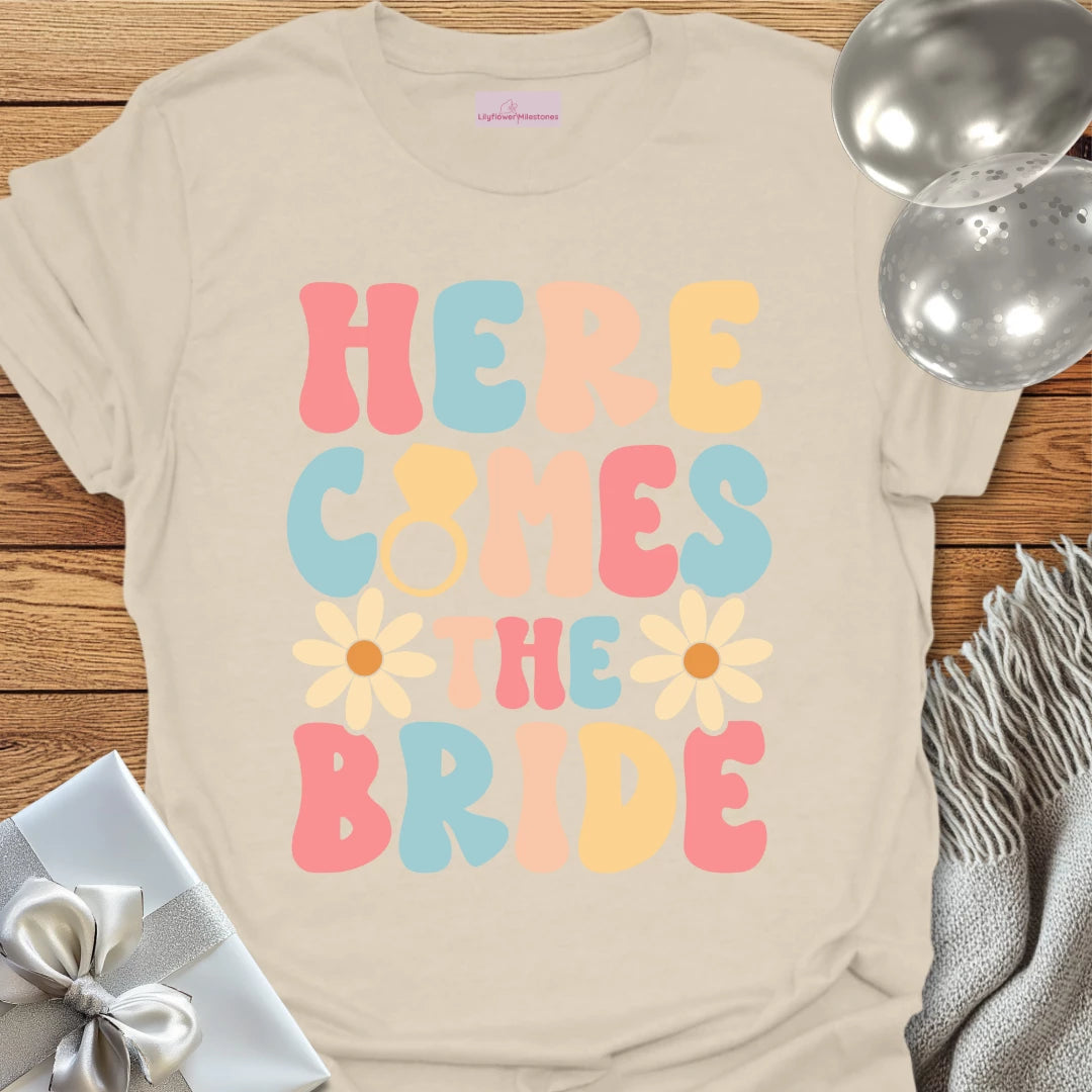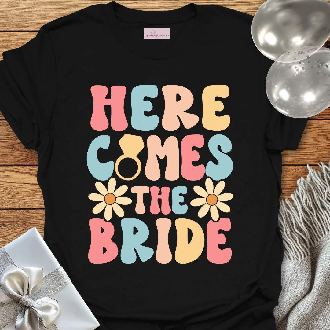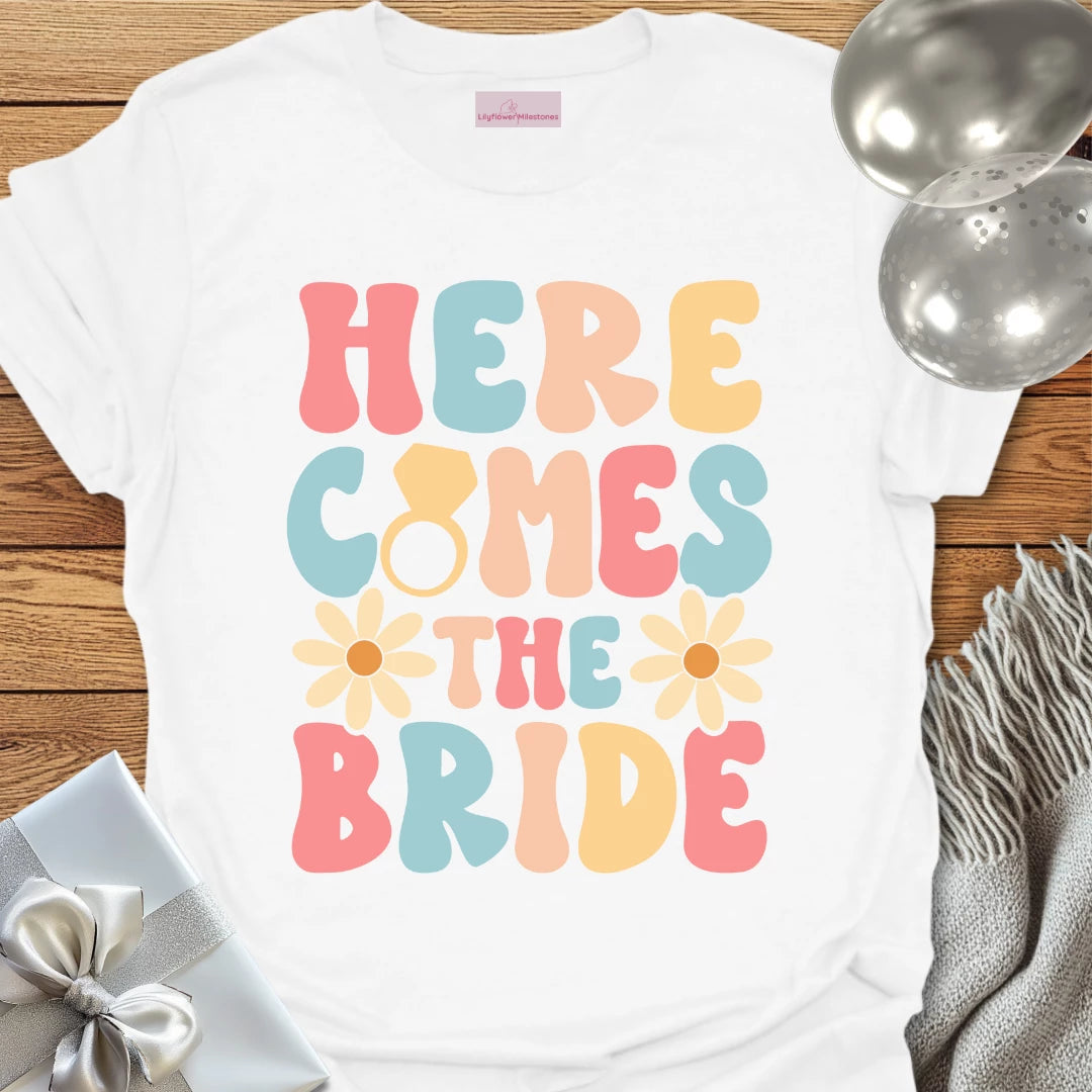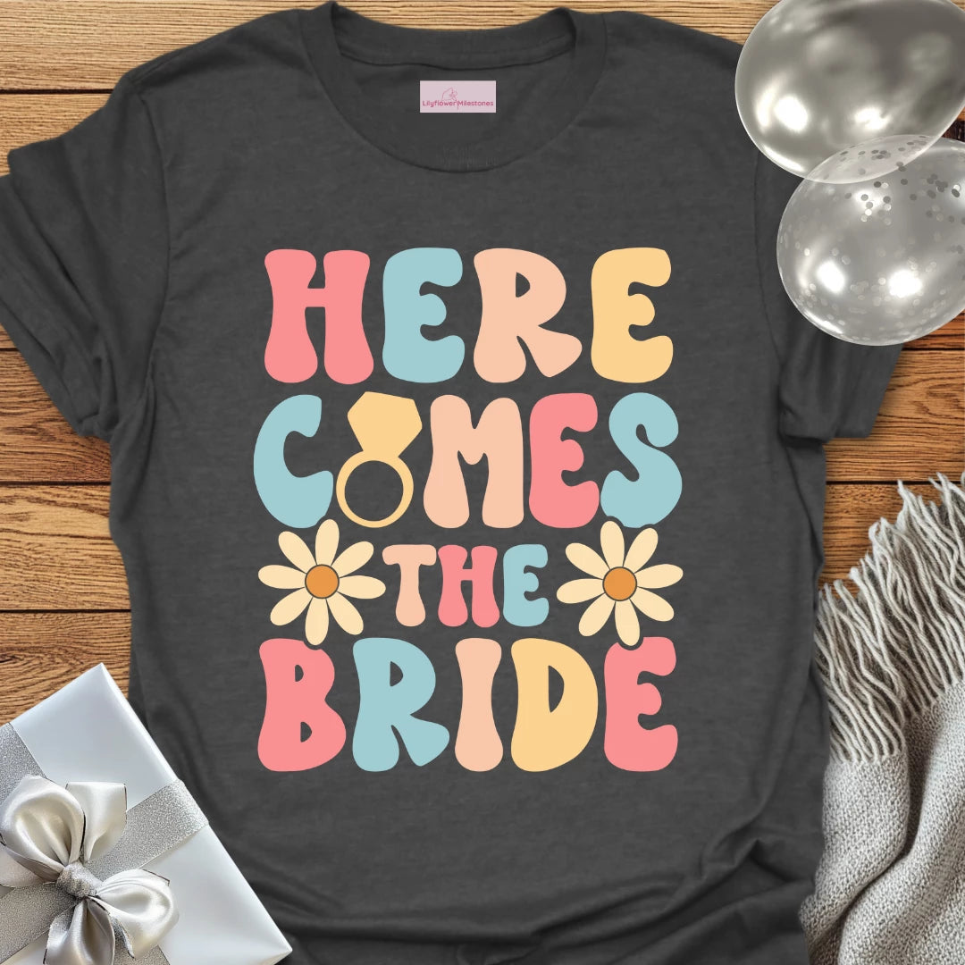 Here Comes the Bride (Groovy Floral) - Wedding T-Shirt