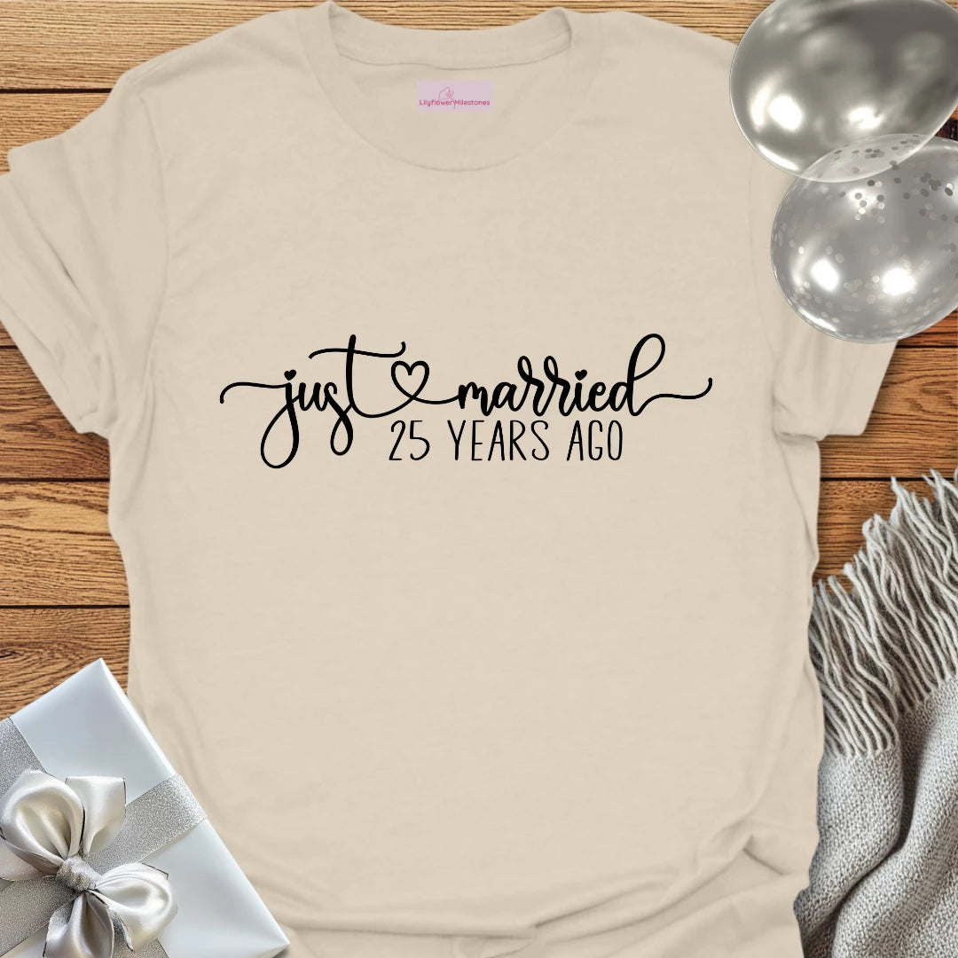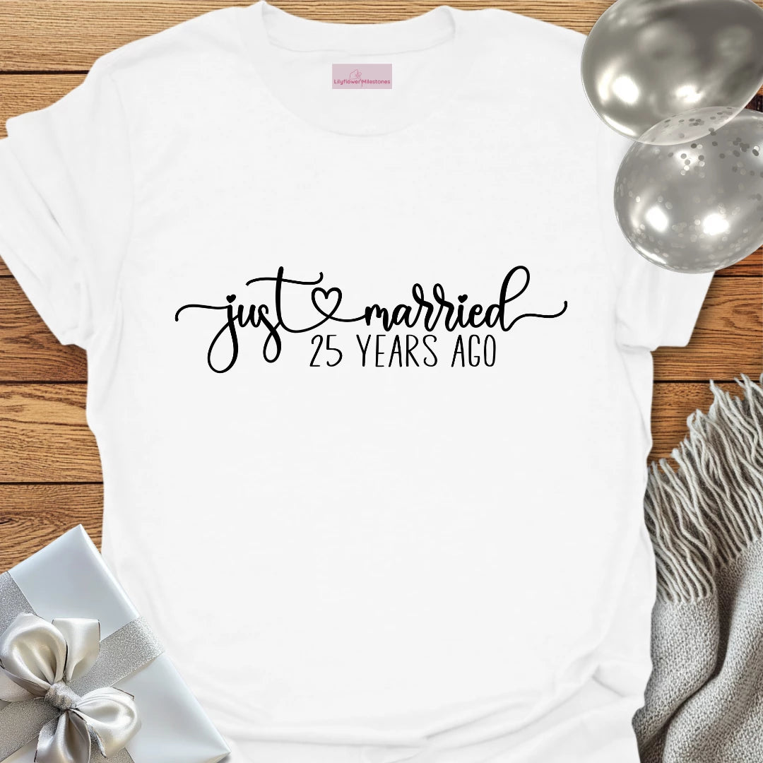 Just Married, 25 Years Ago - 25th Wedding Anniversary T-Shirt
