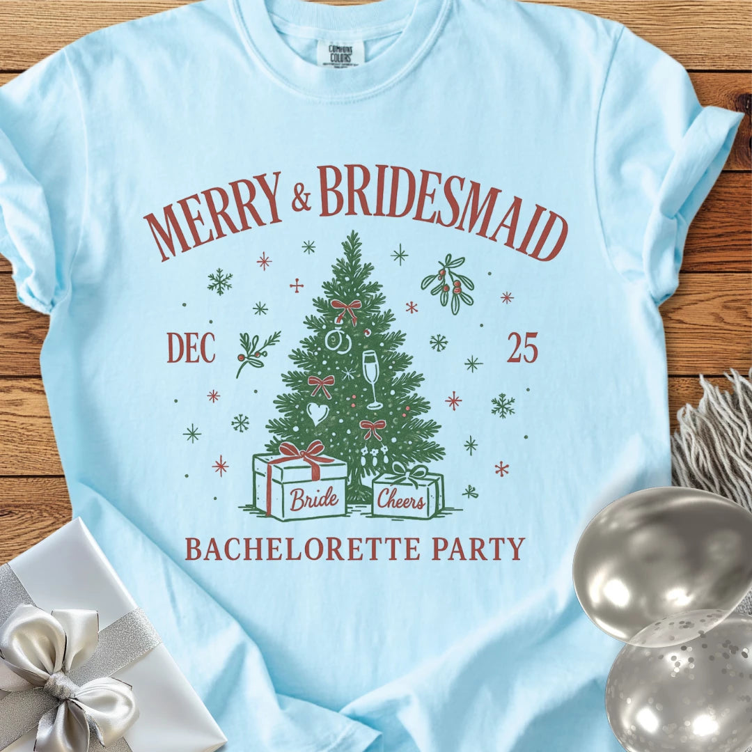 Merry & Bridesmaid - Premium Christmas Bachelorette Party T-Shirt