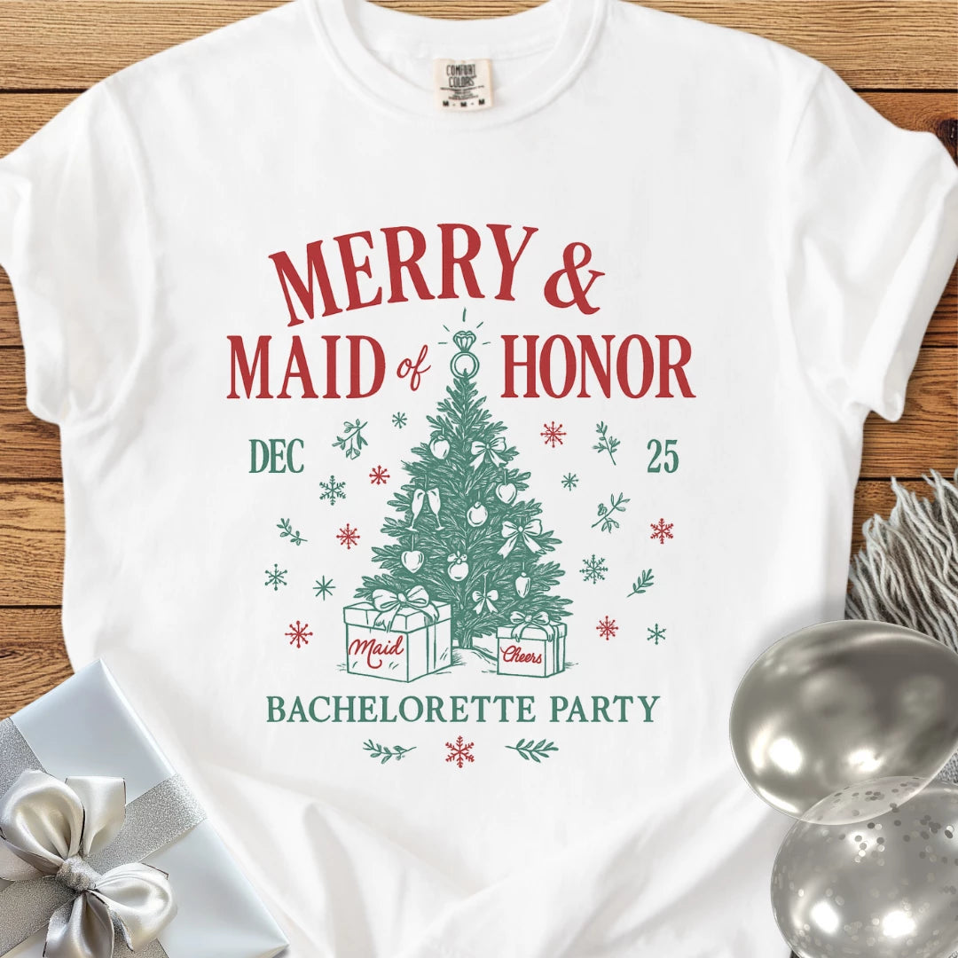 Merry & Maid of Honor - Premium Christmas Bachelorette Party T-Shirt