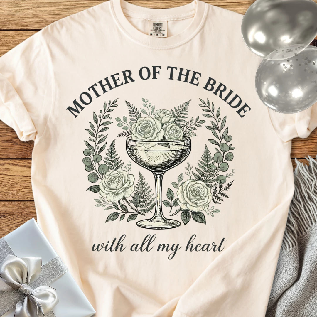 Mother of The Bride, With All My Heart - Premium Vintage Botanical Wedding T-Shirt